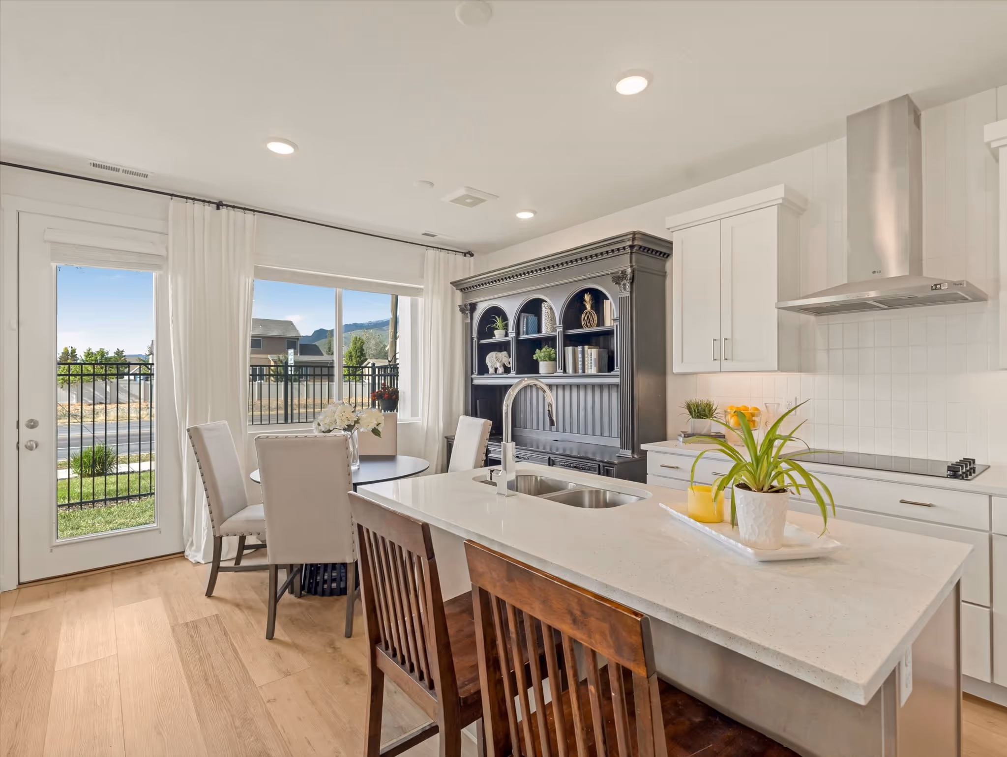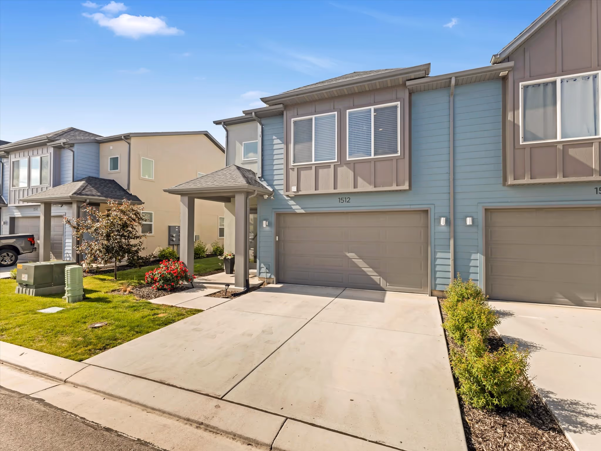 Welcome to 1512 Fiore Dr, Farmington, UT This beautiful two-story end-unit townhome offers over 1,900 square feet of stylish living space, incredible natural light, and fenced yard. It seamlessly blends comfort, functionality, and elegance with three spacious bedrooms and three bathrooms. The open-concept main level is perfect for entertaining, featuring sleek quartz countertops, upgraded cabinetry, and stainless steel appliances that give the kitchen a modern, sophisticated feel.